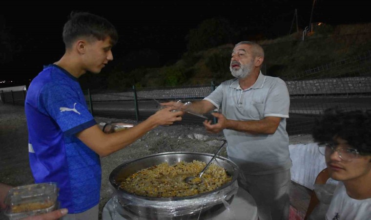 Kastamonu’nun Tosya ilçesinde hayırsever iş adamı, düzenlenen halı saha turnuvasına katılan sporculara sahada aşure ikram etti.