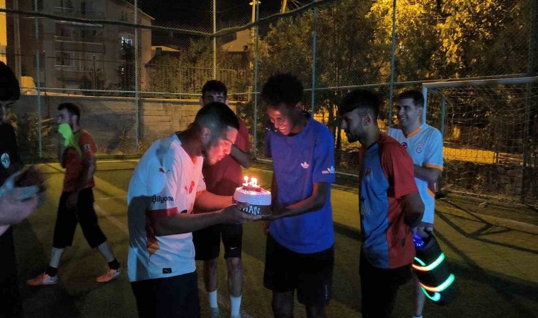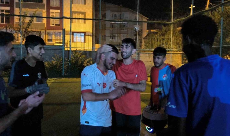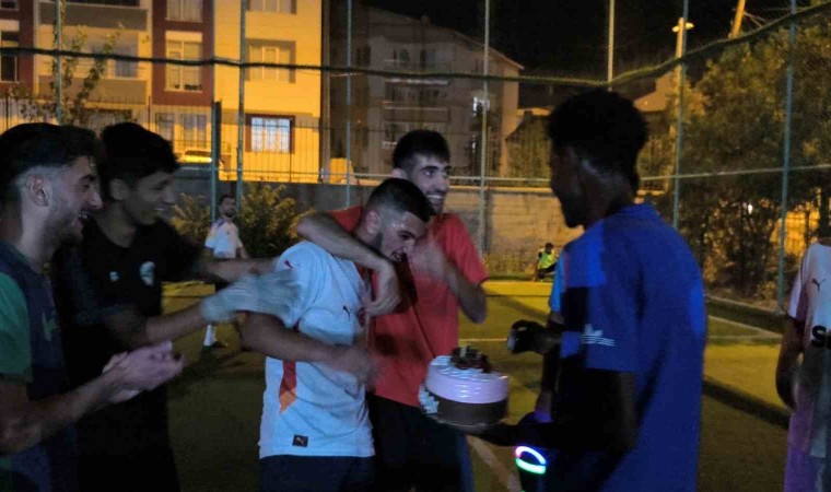 Üniversite öğrencileri futbolu çok seven arkadaşları için futbol oynadıkları halı sahada sürpriz doğum günü partisi gerçekleştirdi. Azerbaycan uyruklu Ayhan Allahverdi’nin okul arkadaşları, düzenli futbol oynadıkları halı sahada oynadıkları maçın en heyecanlı dakikasında ışıkları kapatarak pastalı doğum günü partisi gerçekleştirdi. Pasta hazırlayan ve hoparlör sistemi kuran öğrenciler, ışıkların sönmesinin ardından sahaya girdi. Işıkların sönmesiyle şaşkınlık geçiren gençler, alkışlar eşliğinde arkadaşlarına mum üfletti. Duygulu anların yaşandığı sahada şaşkınlığını gizleyemeyen Allahverdi, şok geçirdiğini ve böyle bir kutlama beklemediğini söyledi.