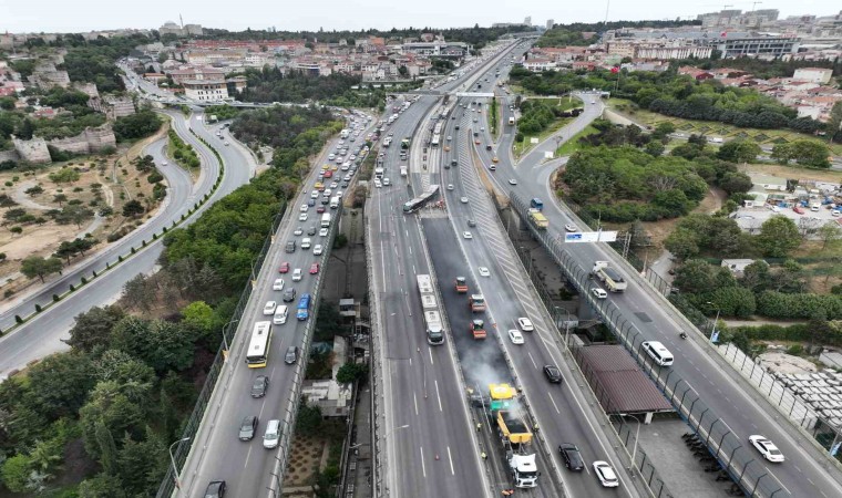 İstanbul Büyükşehir Belediyesi (İBB) ekipleri dün, Haliç Köprüsü’nde asfalt yenileme çalışması başlatmıştı. Çalışmalar nedeniyle orta köprünün iki şeridi Ankara istikametinde trafiğe kapatılırken, kilometrelerce oluşan trafik havadan görüntülendi.