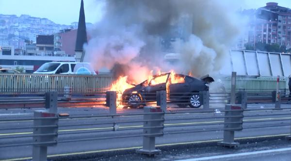 Kaza da alev alev yanan otomobil kullanılmaz hale gelirken Haliç Köprüsü Edirne istikameti bir süreliğine trafiğe kapatıldı. Kaza sebebiyle oluşan trafikten kaçmak için bazı sürücüler ters yönde ilerledi. İtfaiye ekiplerinin çalışmalarının ardından büyük bir kısmı yanan otomobil kaldırılarak köprü tekrardan araç trafiğine açıldı. Polis kazayla ilgili inceleme başlattı. (DHA)