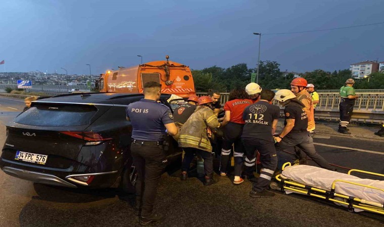 Kaza sabaha karşı 05.00 sıralarında meydana geldi. Sürücüsünün ismi öğrenilemeyen 34 FPC 576 plakalı otomobil Haliç Köprüsü üzerinde yol temizleme çalışması yapan İstanbul Büyükşehir Belediyesine bağlı 34 08 3844 plakalı araca arkadan çarptı. Öğrenilen bilgiye göre kazanın ardından otomobil sürücüsü araçta bulunan yabancı uyruklu kız arkadaşını ağır yaralı şekilde bıraktı ve olay yerinden kaçarak uzaklaştı. Kaza sonrası olay yerine polis, itfaiye ve sağlık ekipleri geldi. Polis ekipleri kazanın yaşandığı Edirne istikametini geçici süreliğine trafiğe kapatarak bölgede güvenlik tedbirleri aldı. İtfaiye ekipleri aracın içerisinde sıkışan yabancı uyruklu genç kadını bulunduğu yerden kurtardı. Sağlık ekiplerinin ilk müdahalesi sonrası yaralı kadın ağır yaralı olarak hastaneye kaldırıldı. Büyükşehir Belediyesine bağlı aracın sürücüsünün ise hafif yaralı şekilde tedbir olarak hastaneye götürüldüğü öğrenildi. Polis ekipleri kaçan şahsın peşine düşerken olayla ilgili inceleme başlatıldı.