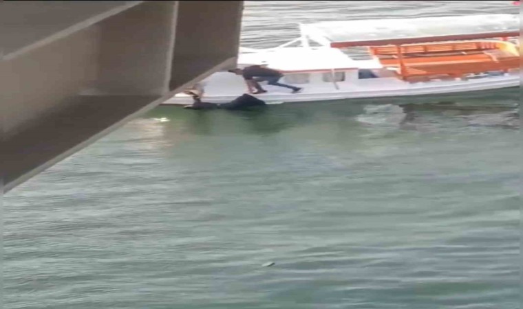 Haliç Metro Köprüsü’nde yürüyen bir kadın dengesini kaybederek aşağıya düştü. Dakikalarca denizin üstüne baygın kalan kadın, tekne kaptanı tarafından kurtarıldı. Korku dolu anlar kameralara yansıdı.