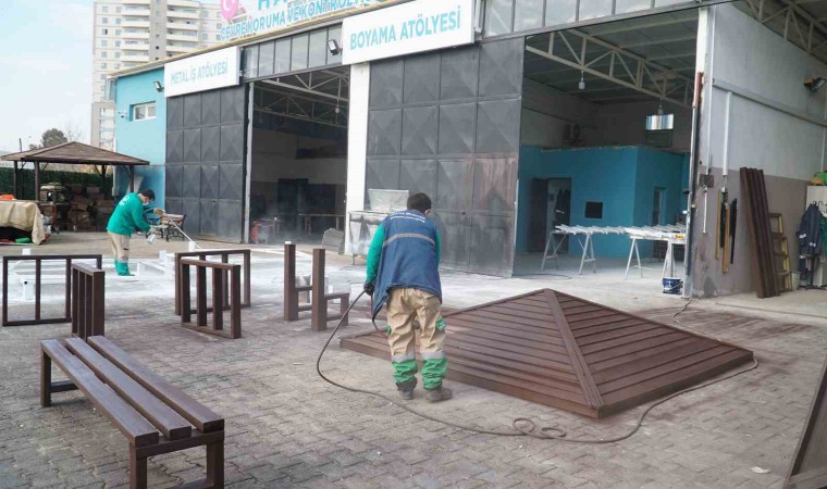 Haliliye Belediyesi Çevre Koruma ve Kontrol Müdürlüğü, Ahşap ve Metal-İş Atölyesi ile kendi kamelya, bank ve piknik masalarını üretiyor.