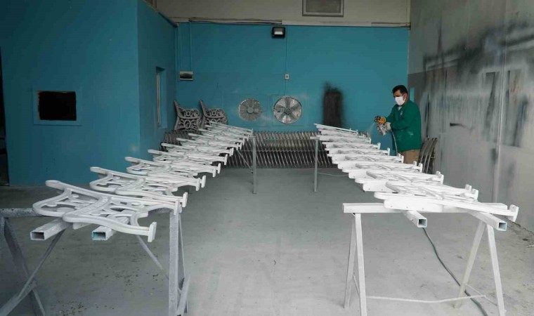Haliliye Belediyesi ile üretimin durmadığı atölyede kamelya, bank ve piknik masalarının sayısı hızla artarken, çalışmaların ise periyodik olarak devam ettiği belirtildi.