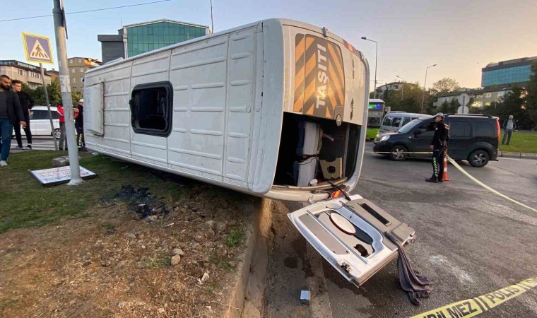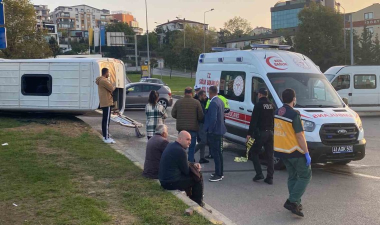 Kocaeli’nin Gebze ilçesinde halk otobüsünün çarptığı işçi servisi devrildi. Kazada 9’u işçi 11 kişi yaralandı. Kaza anı anbean araç içi kamerasına yansıdı.