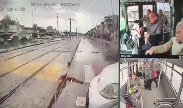 Kaza anıysa halk otobüsünün kameralarına saniye saniye yansıdı. Görüntülerde seyir halinde giden halk otobüsünün önüne bir anda hafif ticari aracın çıkması ve çarpışmanın şiddetiyle otobüsün içerisindeki yolcuların panik anları yer aldı.