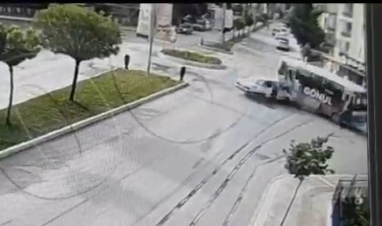 Halk otobüsüyle otomobilin çarpışma anı kamerada