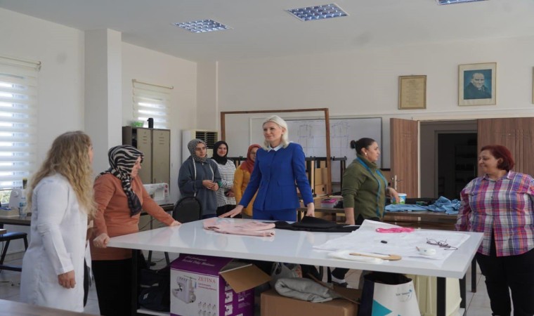 Belediye Başkanı Melek Mızrak Subaşı, mahalle konağında dikiş kursuna katılan kadınlar ile bir araya geldi.