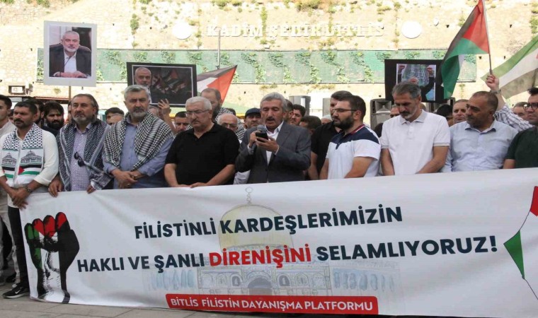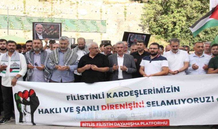 Haniye’nin şehit edilmesinin ardından Türkiye’nin dört bir yanında olduğu gibi Bitlis Ulu Cami’de gıyabi cenaze namazı kılındı. Namaz sonrası bir araya gelen sivil toplum kuruluşları üyeleri, sloganlarla İsrail saldırılarını lanetledi. İkindi namazından sonra Ulu Cami meydanında toplanan kalabalık adına basın açıklamasını okuyan Bitlis Şube Başkanı Behzat Durak, “İsmail Haniye emanetini Rahmeti Rahmana teslim ederek, Şeyh Ahmet Yasin, Abdülaziz el- Rantisi’nin aziz davasındaki izlerini takip ederek şehitler kervanına katıldı” dedi.