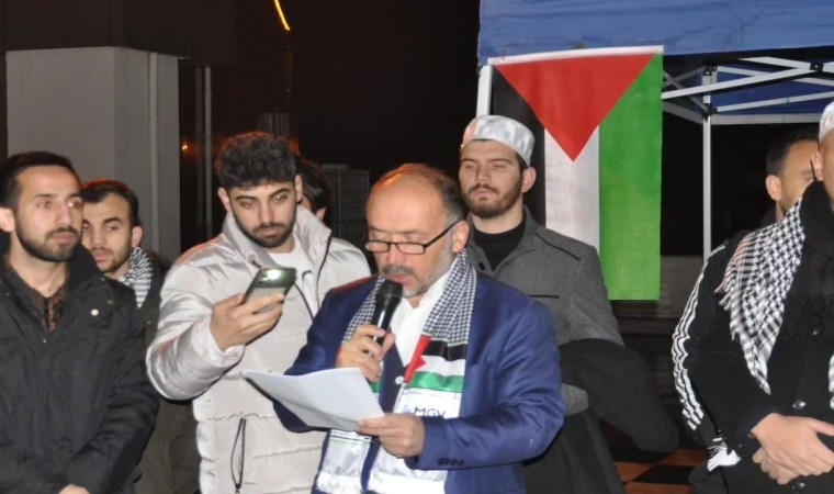 Törenin ardından konuşan AGD Karabük Şube Başkanı Aziz Gündoğdu çatışmaların başladığı 7 Ekim’den bu yana 30 bin civarında Filistinlinin hayatını kaybettiğini ifade etti.