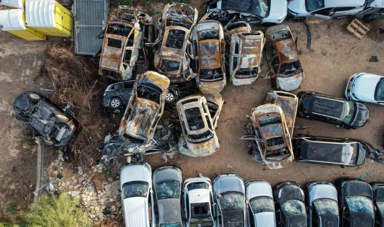 Hamas’ın 7 Ekim’de basın düzenlediği İsrail’deki Süpernova Festival alanındaki sahipsiz araçlar, Sderot kentine çekildi. Araçların hemen hepsinde kurşun izleri bulunurken, bazı araçların ise tamamen yandığı görüldü.
