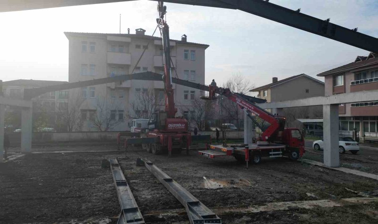 Betonarme imalatlar ve sahadaki çelik imalatların kontrolünün gerçekleştirildiği modern pazaryeri inşaatında çelik çatı yüksekliği en düşük olan noktada 4,5 metre en yüksek olan noktada ise 7 metre olarak belirlenerek, pazarı kullanacak olan esnaf ve vatandaşlar için ferah ve havadar bir ortam oluşturulması sağlanmış olacak.
