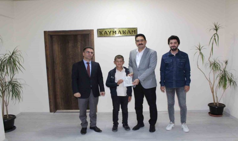 Ağrı’nın Hamur ilçesinde, bursluluk sınavında derece yapan iki öğrenci, Kaymakam Ali Yıldırım’ı makamında ziyaret etti.