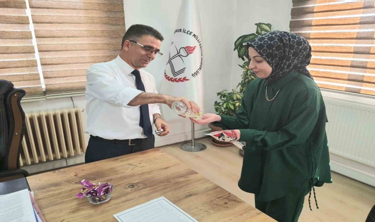 Ağrı’nın Hamur ilçesine yeni atanan 116 öğretmen, ilçe Milli Eğitim Müdürü Kaya Karakoç tarafından makamında gül, çikolata ve kolonya ile karşılandı.