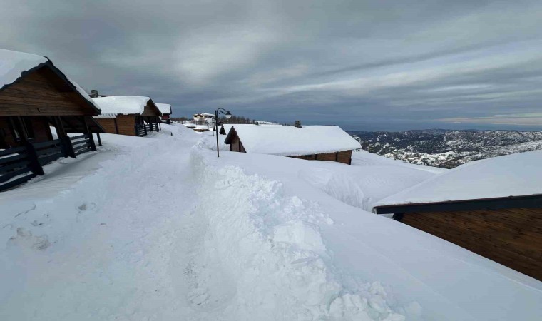 Rize’nin Handüzü Yaylası’nda kar kalınlığı 172 santimetreye ulaşınca ünlü kayak merkezi Palandöken’i geride bıraktı.