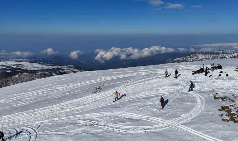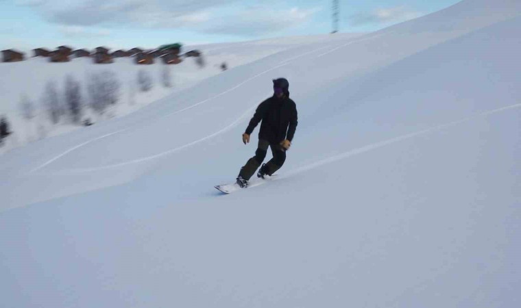 Tüm kayak merkezlerini kar kalınlığında geride bırakan Handüzü Yaylası snowboardçular için cazibe merkezi oldu.