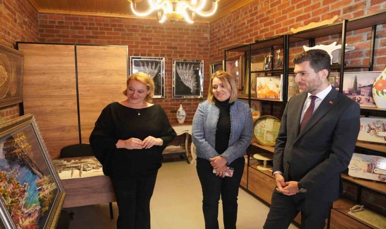 Sanat atölyeleri içinde öğrencilerin ders çalışabileceği, dil öğrenebileceği, kurs görebileceği, hediyelik eşya satın alabileceği alanlar oluşturduklarını ifade eden Başkan Karagöl “Burada kitaplardan, kütüphanemizden yararlanabilecekleri, hem de öğrencilerin ders çalışabilecekleri bir ortam bulunmakta. Biz aslında burada şunu da yapmış olduk. Buradaki kurslarımızda yapılan ürünlerin satışını da yaptırmak istiyoruz. Bu kompleks aslında şuna hizmet edecek. Biz insanlarımıza kursları açarak hobiyi öğretiyoruz. Hem de edindikleri hobiden ürettikleri ürünleri de satabilecekleri ortamları da onlara sağlamış bulunuyoruz. Bizlerin ziyaretlerimizde götürdüğümüz hediyeler var. Bu hediyeleri de buradaki kurslarımızdan çıkan ürünlerden alarak hem mekanı oluşturduğumuz, hem satış yerlerini oluşturduğumuz kursiyerlerimize müşteri olarak çalışmalarına katkıda bulunmuş oluyoruz. Dil akademisi, dil kafemiz ve bunla beraber kütüphanemizin bulunduğu Hanife Büşra Konyar Sanat Atölyemiz vatandaşın hizmetine şuan için açılmış bulunmakta. Erbaa’da insanlarımızın gitmiş oldukları misafirliklerde, ziyaretlerinde hediye alacaklarsa bu sanat atölyesini kesinlikle ziyaret etmelerini istiyorum. Vakitleri varsa kurslarımıza katılmalarını istiyorum. Bizim bu kurslarımız yine Halk Eğitimi Merkeziyle birlikte yaptığımız kurslar. Emin olsunlar Erbaa’da var mı acaba dedikleri, gerçekten bu ürünleri Erbaa’da bulabilir miyiz diye düşünecekleri ürünleri burada kurslarımızda üretiyoruz. Gelsinler burada Erbaa’nın Erbaa’daki kadınların ürettiği ürünlerden hediyeler götürsünler” diye konuştu.