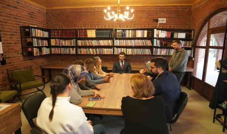 Hanife Büşra Konyar Sanat Atölyesi içinde Dil Akademisi kurduklarını ifade eden Erbaa Belediye Başkanı Ertuğrul Karagöl “Burada çok şükür, seramik kursumuzun ürünlerini, çini atölyemizin, rölyef, tezhip, minyatür ve ebru sanatının ürünlerinin satıldığı ve kurslarının yapıldığı bir alan olarak burayı vatandaşın hizmetine, kursiyerlerimizin hizmetine açmış bulunmaktayız. Biz burada bu kursların yanı sıra insanların İngilizce konuşmasını geliştirecek, arttıracak bir ortam da burada sağlamış olduk. Bizim seçim beyannamemizde de Yabancı Dil Akademisi diye adlandırdığımız bir bölüm de vardı. Biz burada Yabancı Dil Akademisi adıyla dil kafe mantığında bir ortam da oluşturduk. Burada öğrencilerimiz, öğretmenlerimiz İngilizce konuşmak isteyen insanlarımız buraya gelip bu kafede ücretsiz şekilde çay kahve içip İngilizce konuşabilecekleri, İngilizce yayınlardan faydalanabilecekleri bir ortam burada oluşturmuş olduk. Bu merkezimizin içerisinde bir de kütüphanemiz bulunmakta. Rahmetli Osman Baş hocamızın adını verdiğimiz, onun da kitaplarının olduğu bir kütüphaneyi de burada hizmete açmış bulunmaktayız” dedi.