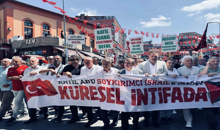 Yürüyüşten ‘Siyonizma karşı omuz omuza, şehitler ölmez vatan bölünmez’ sloganları atıldı.