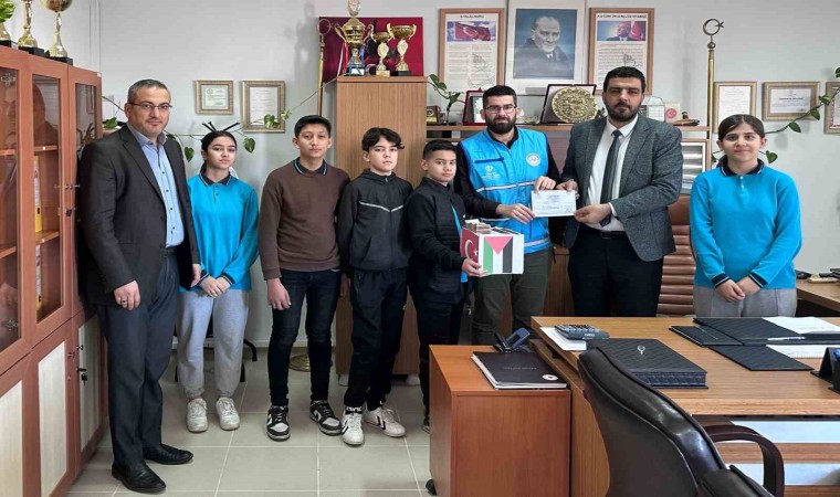 Manisa’nın Yunusemre ilçesindeki Barbaros Şehit Mehmet Savunmaz Ortaokulu öğrencileri kendi elleriyle yaptıkları kumbaralarda harçlıklarını biriktirerek Gazze halkına yardım gönderdi.