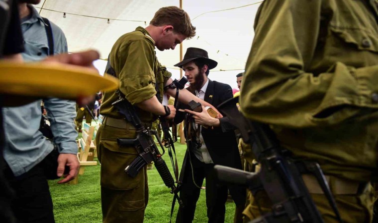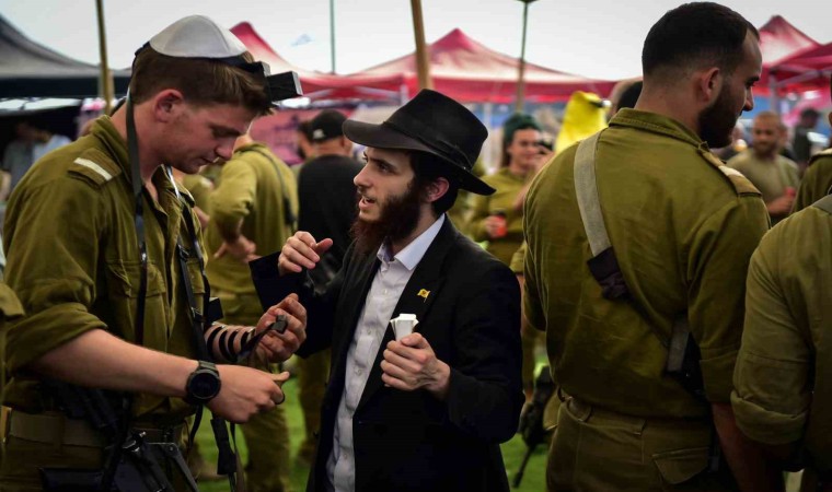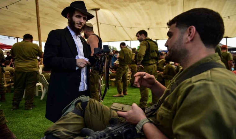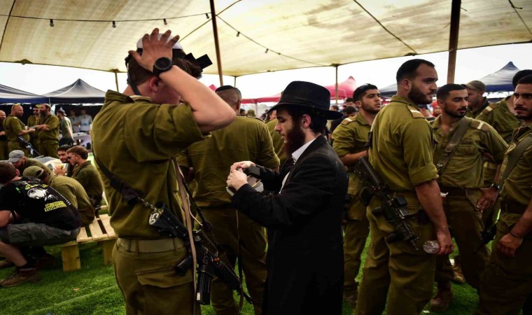 İsrail hükümeti, Gazze’ye saldırıların başladığı 7 Ekim’de savaş durumuna geçerek yedek askerleri göreve çağırdı. Yapılan çağrının ardından yurt dışında yaşayanlar da dahil olmak üzere çok sayıda İsrailli sivil orduya katıldı. Gazze sınırına yakın noktalarda toplanan askerler, yapılan hazırlıkların ardından birliklerine gönderiliyor. "Ultra Ortodoks" olarak bilinen Harediler, sınır bölgesinde birliklerine katılmak üzere yola çıkacak olan askerlere sol kol ile başa takılan, içinde Tevrat’tan bölümler bulunan "tefilin" giydirip dua okuttu.
