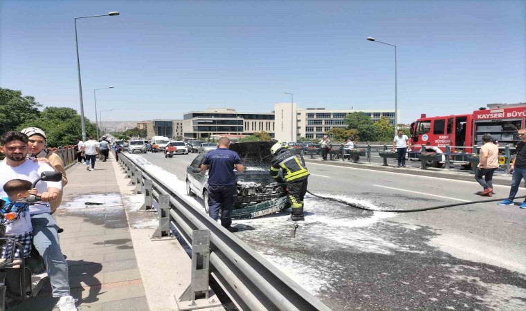 Edinilen bilgiye göre, Kocasinan ilçesinde bulunan Sümer Üst Geçit üzerinde hareket halindeki 38 AHD 275 plakalı otomobil, bir anda motor kısmından yanmaya başladı. Otomobilin alev aldığını fark eden şoför ve oğlu, otomobilden çıkarak durumu itfaiye ekiplerine bildirdi. İhbarın ardından olay yerine gelen polis yol üzerinde güvenlik önlemi alırken, itfaiye ekipleri ise yanan otomobile müdahale etti. İtfaiye ekiplerinin çalışması sonrasında yangın kontrol altına alınırken otomobilde maddi hasar meydana geldi.