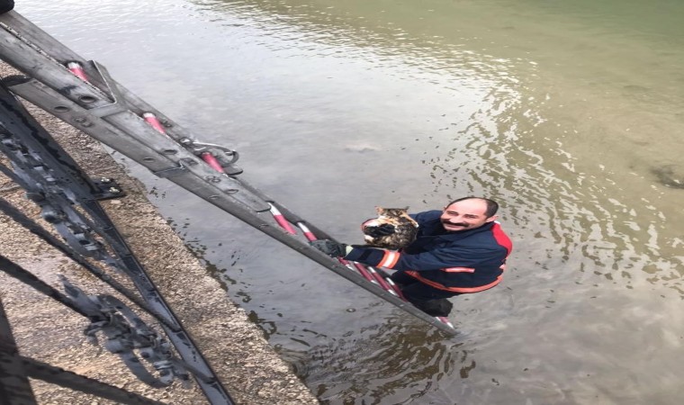 Gümüşhane’de Harşit Çayı’na düşen yavru kedi itfaiye ekiplerinin çalışmasıyla kurtarıldı. Ekipler kediyi kurtardıktan sonra selfie çekilmeyi de unutmadı.