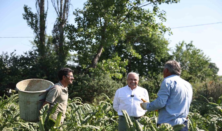 Nilüfer Belediye Başkanı Şadi Özdemir, Hasanağa Mahallesi’nde enginar hasadı yapan üreticileri tarlada ziyaret ederek bereketli bir sezon diledi.