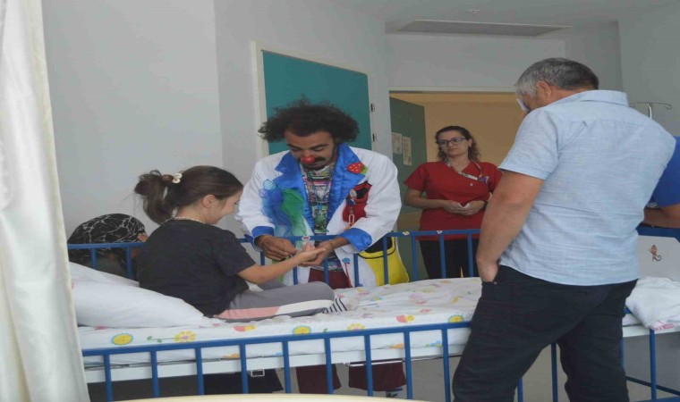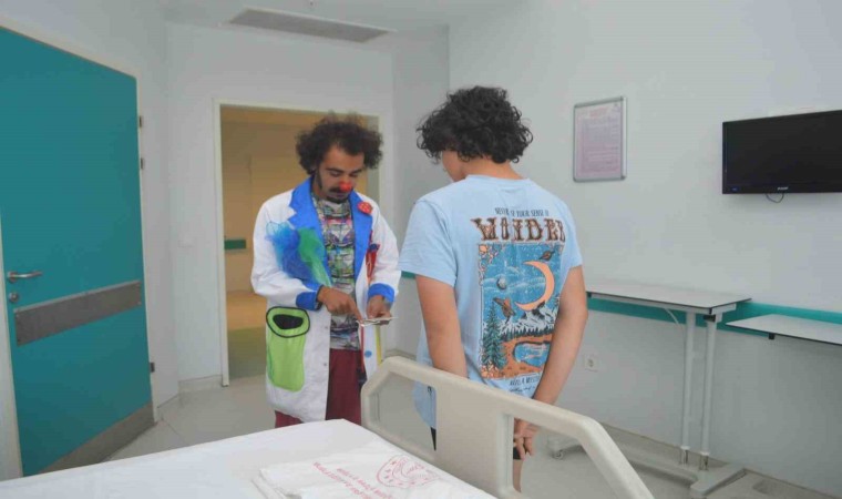 Muğla Eğitim ve Araştırma Hastanesinde yatan çocuk hastalıkları ve çocuk cerrahisi servislerinde yatarak tedavi gören minik hastalara, gönüllü Palyaço Dr. Zeytin geçmiş olsun ziyareti gerçekleştirdi. Çocukların yüzünü güldürmeyi amaçlayan Dr. Zeytin, bu anlamlı ziyaretiyle hastanedeki miniklere moral verdi.
