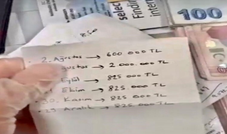 Poşetlere gizlenmiş balya balya paralar ve aylara bölünmüş rüşvetin çizelgesini içeren notlar