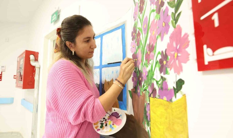 Kahramankazan Belediyesi bünyesinde faaliyet gösteren Alparslan Türkeş Mahalle Kültür Evi’nin kursiyerleri, Kahramankazan Devlet Hastanesi palyatif bölümünde yatan hastalar için duvarları resimlerle süsledi.