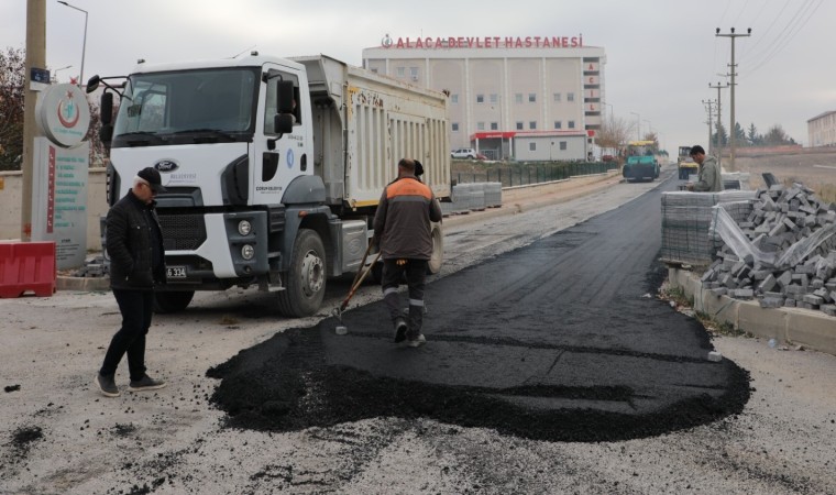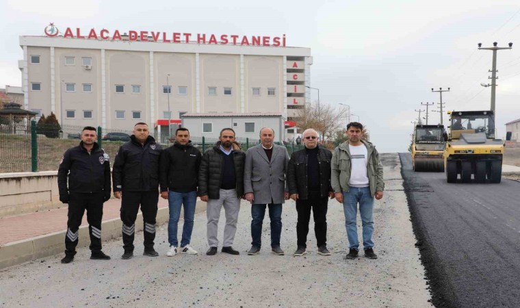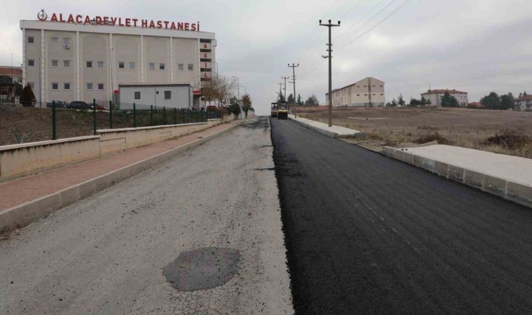 Çorum’un Alaca ilçesinde altyapı çalışmaları tamamlanan Devlet Hastanesi acil servisi yoluna sıcak asfalt kaplama çalışmalarına başlandı.