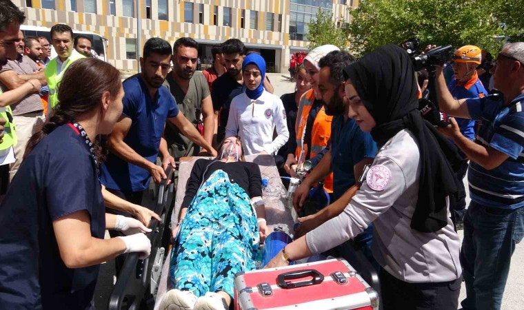 Sağlık Bilimleri Üniversitesi (SBÜ) Van Eğitim ve Araştırma Hastanesinde gerçekleştirilen deprem tatbikatı gerçeği aratmazken, senaryo gereği görüntü almaya çalışan basın mensuplarına da zorluk çıkarıldı.