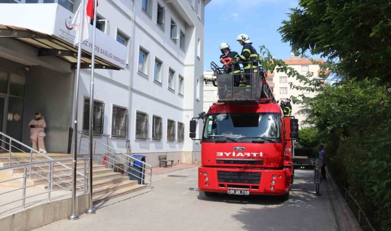 Siirt Belediyesi İtfaiye Müdürlüğü, Ağız ve Diş Sağlığı Merkezinde sağlık personeli, hastalar ve itfaiye ekipleri ile acil durumlara hazırlık amacıyla hasta kurtarma ve yangın tatbikatı düzenledi.