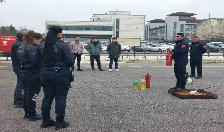 Düzce Belediyesi İtfaiye Müdürlüğü ekiplerince Düzce Atatürk Devlet Hastanesinde yangın söndürme eğitimi ve tatbikatı gerçekleştirildi. Düzce Atatürk Devlet Hastanesi Eğitim Birimi koordinatörlüğünde hastane bahçesinde düzenlenen programda, itfaiye ekipleri hastane personellerine yangın söndürme eğitimi verdi. Hastanede karşılaşılabilecek bir yangın halinde en hızlı ve doğru şekilde müdahale edilerek, oluşabilecek zararları en aza indirmek ve muhtemel tehlikeleri önlemek için yapılacak çalışmalar hakkında personel bilgilendirildi. Ardından hastane bahçesinde yangına müdahale tatbikatı gerçekleştirildi.