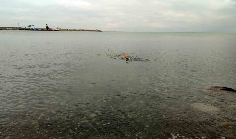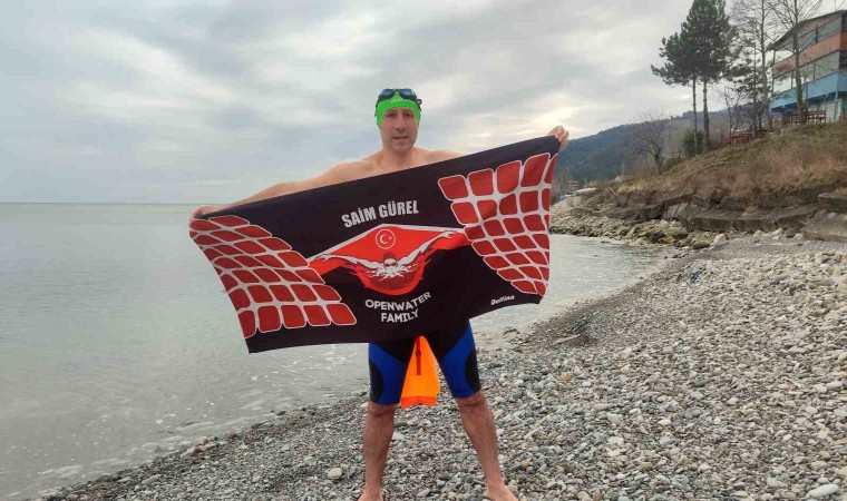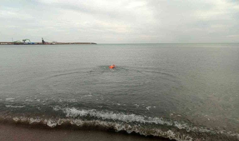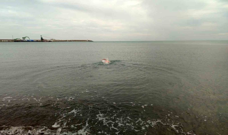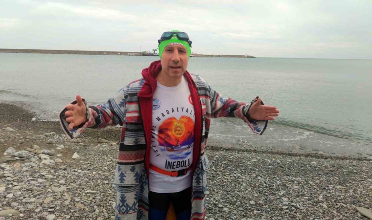 Gece saatlerinde yer yer hava sıcaklığının eksi 8 derecede seyrettiği, gündüz saatlerinde de 8 derece olduğu Kastamonu’nun İnebolu ilçesinde yaşayan Saim Gürel, soğuk havaya aldırmadan Karadeniz’in serin sularına atladı. Sabahın erken saatlerinde İnebolu Limanı mevkisine gelen Gürel, üzerine giydiği “İstiklal Madalyalı tek ilçe İnebolu” yazılı tişörtüyle hazırlıklarını tamamladıktan sonra denize girdi. Gürel, bir süre denizde yüzdükten sonra tekrar sahile çıktı.