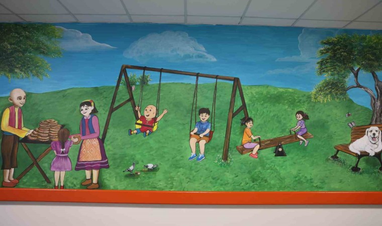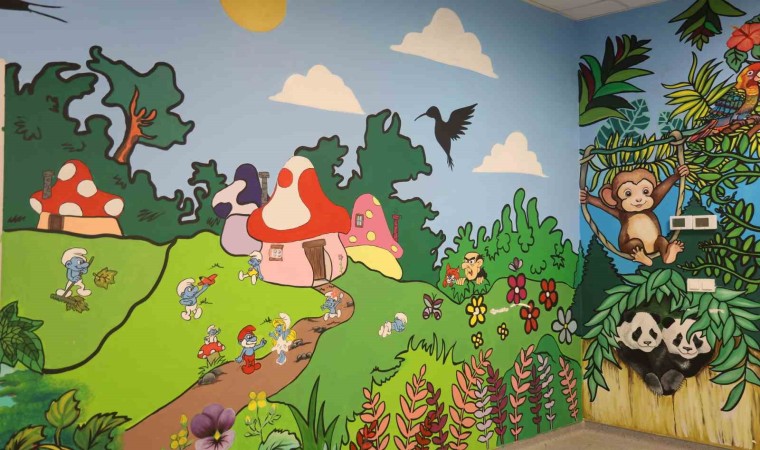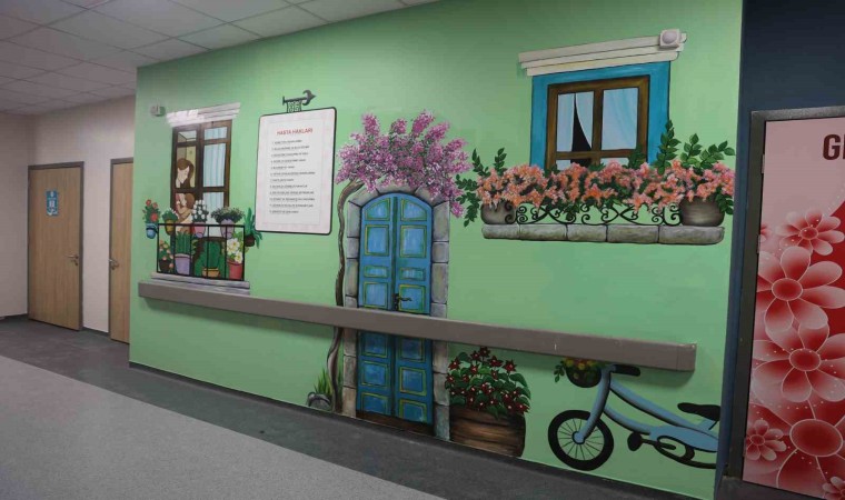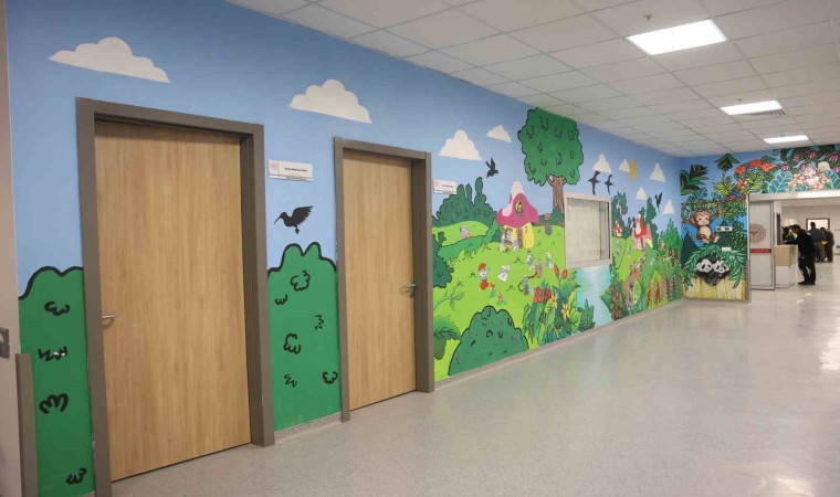 HATAY (İHA) – Hatay’da asrın felaketinden sonra inşa edilen Defne Devlet Hastane’nin çocuk servis bölümlerin duvarlarına ‘Çocuk Dost Köy’ projesiyle çizgi film karakterleri çizildi.