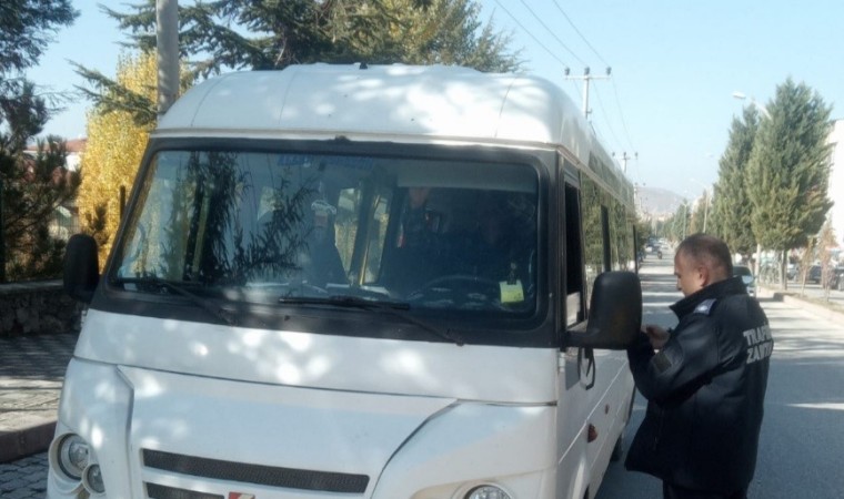 Kütahya’nın Tavşanlı ilçesinde hat dolmuşları ve okul servisleri denetleniyor.