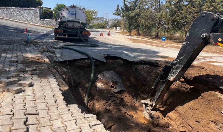 Muğla’nın Bodrum ilçesinde ana isale hattında patlama meydana geldi, yol trafiğe kapatıldı.