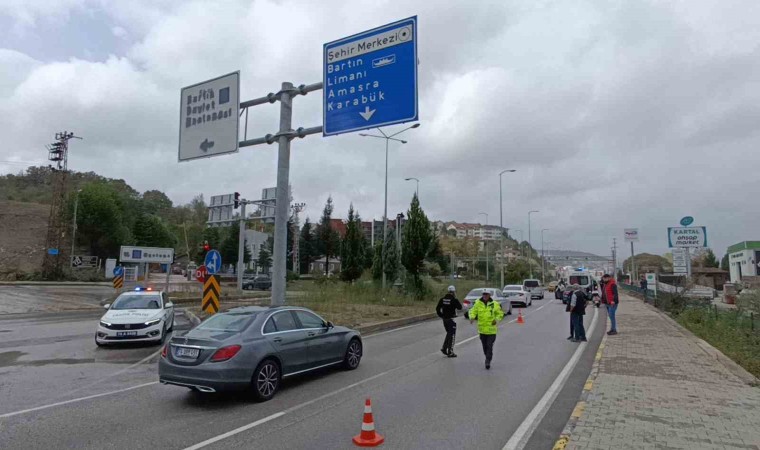 Bartın-Zonguldak karayolu Çavuş Caddesi’nde meydana gelen kazada, Bartın’dan Zonguldak istikametine seyir eden M.T. idaresindeki, 74 AE 692 plakalı Skoda marka otomobil, dönüşün yasak olduğunu gösteren tabelaların bulunduğu bölgeden U dönüşü yaptı. O esnada ise hız ve kaygan zemin nedeniyle duramadığı ileri sürülen K.Y. idaresindeki 74 AAC 33 plakalı Volkswagen marka otomobil ise dönüş yapan araca arkadan çarptı. Kazada her iki aracın sürücüsü ile H.T isimli kadın yaralandı. Olay yerine sevk edilen ambulanslarla hastaneye kaldırılan yaralıların sağlık durumunun iyi olduğu öğrenildi.