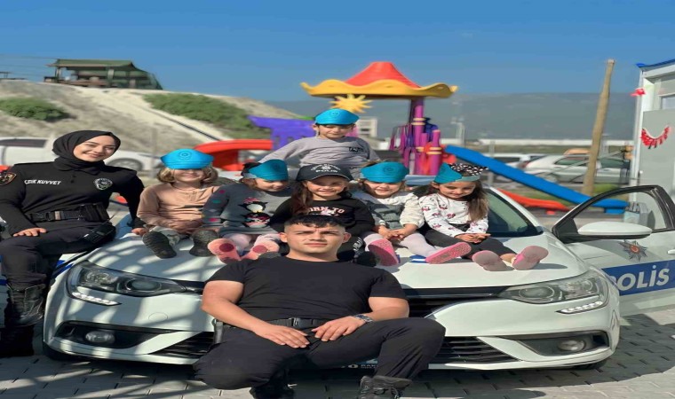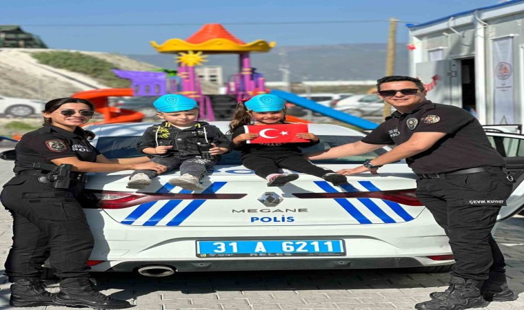 Hatay’da polis ekipleri konteyner kentteki minik öğrencilerle sosyal etkinlik çerçevesinde bir araya geldi.