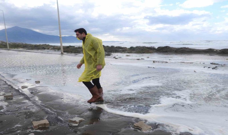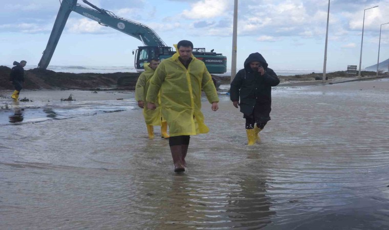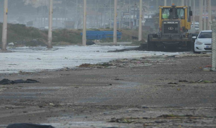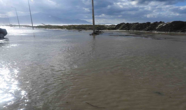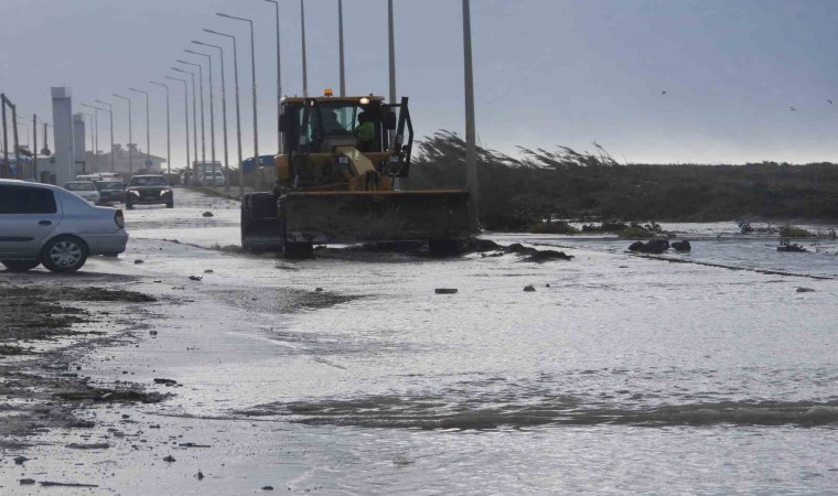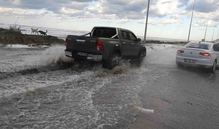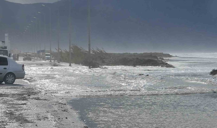Hatay’ın Samandağ ilçesinde fırtına dolayısıyla deniz yola taştı.
