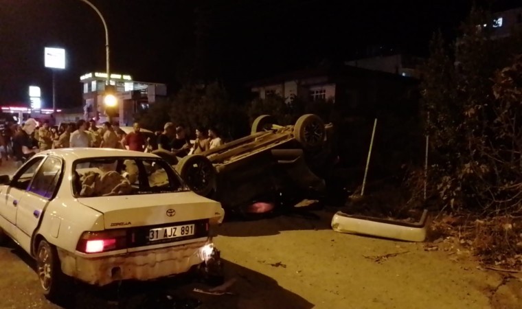 Kaza, saat 20.30 sıralarında İskenderun - Antakya yolu Serinyol kavşağında meydana geldi. Ara sokaktan çevre yoluna çıkış yapmak isteyen 31 AHV 813 plakalı otomobil, seyir halindeki 31 AJZ 891 plakalı otomobille çarpıştı. Çarpışma sonrası 31 AHV 813 plakalı otomobil ters döndü. Kazada, araçlarda bulunan 4 yaralı şahıs olay yerine gelen ambulanslarla hastaneye kaldırıldı.