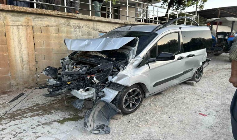 Hatay’ın Altınözü ilçesinde fren sisteminde yaşanan araza sonrası park halindeki 3 araca çarpan ve evin duvarını yıkan taş yüklü traktör, ortalığı savaş alanına çevirdi.