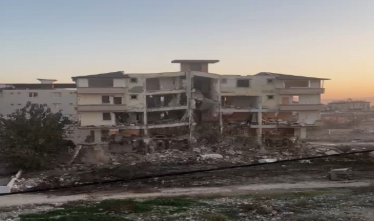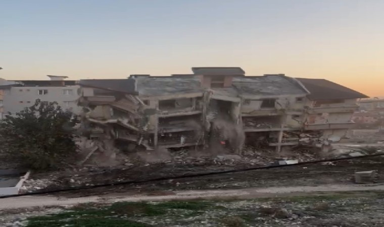 Kahramanmaraş merkezli depremlerde ağır hasar alan Hatay’da mahkeme süreci sona eren binaların yıkım ve enkaz kaldırma çalışmaları aralıksız sürüyor. Antakya ilçesi Ürgenpaşa Mahallesi’ndeki 5 katlı bina, iş makinesinin darbesiyle kontrollü olarak yıkıldı. Binanın yıkılma anı ise kameraya anbean yansıdı. Binanın yıkımı esnasında herhangi bir olumsuzluk yaşanmadı.