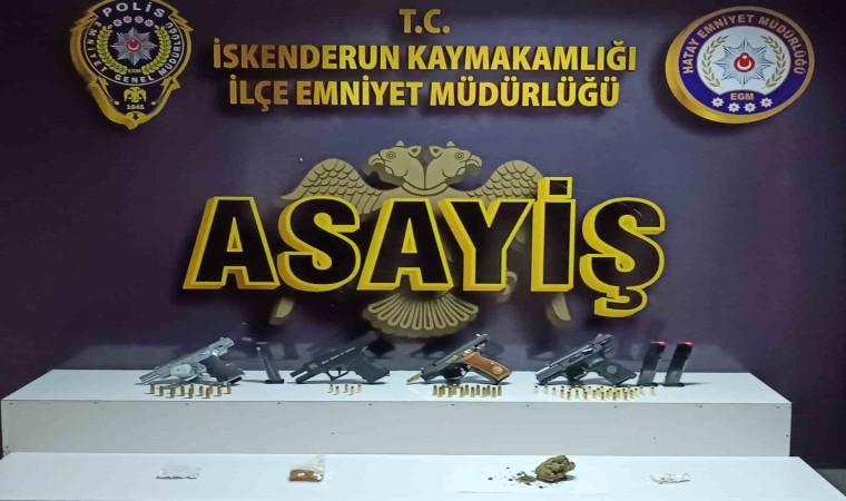 Hatay Emniyet Müdürlüğü tarafından İskenderun ilçesinde huzur ve güven uygulaması yapıldı. Uygulamada 9 şüpheli yakalandı. Şahısların arasında geçtiğimiz günlerde Buluttepe Mahallesi’nde meydana gelen ikamet kurşunlama ve 6136 sayılı kanuna muhalefet olayların şüphelileri olan F.Ö., H.D. ve K.T. yakalandı. Ayrıca şüphelilerin üst ve evlerde yapılan aramalarda,7 ruhsatsız tabanca, 5 tüfek,6 şarjör, 109 fişek, 3 tüfek fişeği, 1 bıçak, 1 el telsizi 10 uyuşturucu hap, 2 gram metamfetamin, 22 gram esrar ve 6 gram kannabionid ele geçirildi.
