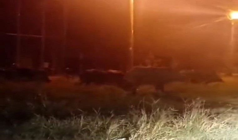 Samandağ ilçesi Tekebaşı Mahallesi’nde aç kalan domuz sürüsü, gece saatlerinde mahalleye indi. Sürü halinde bir süre gezen domuzlar bir vatandaşın cep telefonuna yansıdı.