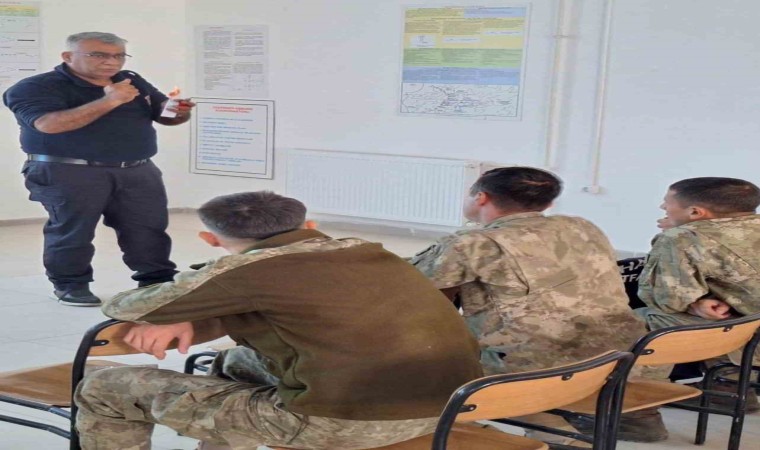 Hatay’da itfaiye ekipleri tarafından vatani Mehmetçiğe yangın güvenliği üzerine eğitim verildi.
