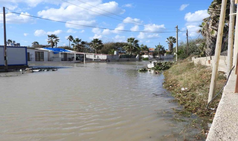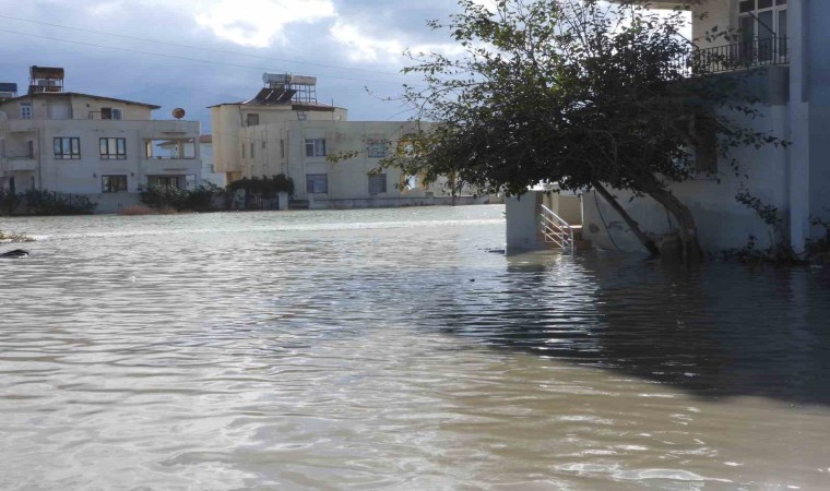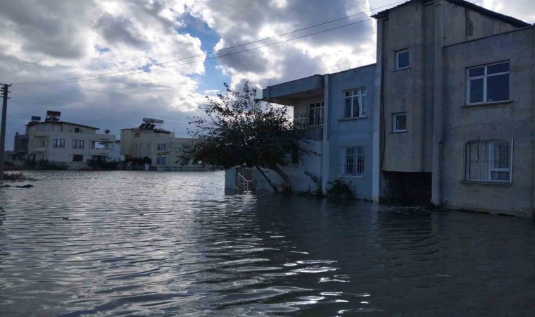 Hatay’ın Samandağ ilçesinde geceden bu yana etkili olan şiddetli rüzgar ve sağanak nedeniyle bazı evler su altında kaldı.