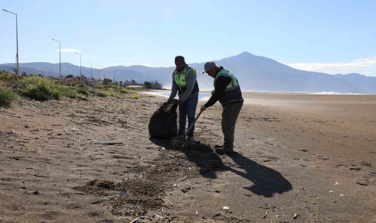 Hatay Büyükşehir Belediyesi Çevre Koruma ve Kontrol Dairesi Başkanlığı ekipleri, Cumartesi ve Pazar günü yağış ile fırtınanın etkisiyle Samandağ’da deniz kenarlarında oluşan çevre kirliliğini ortadan kaldırıyor.